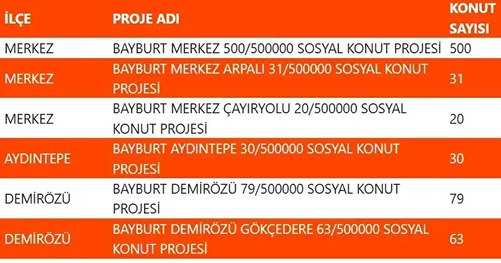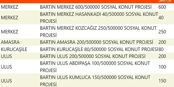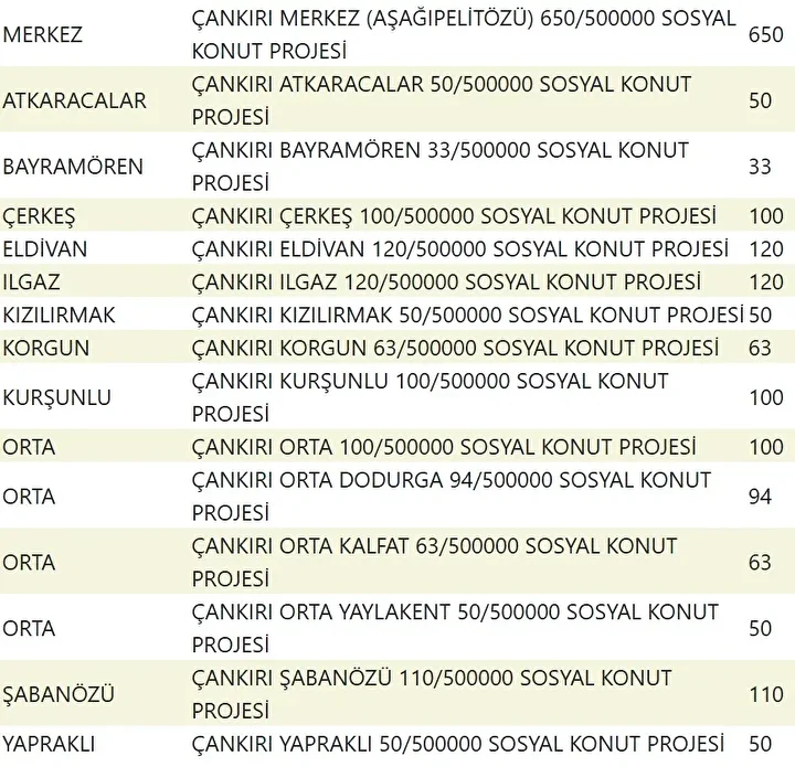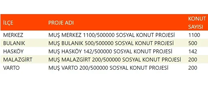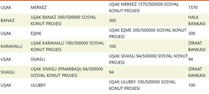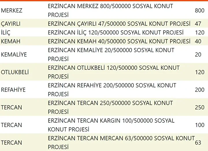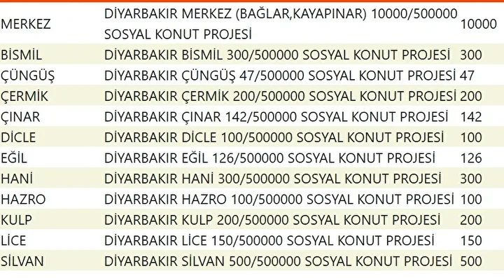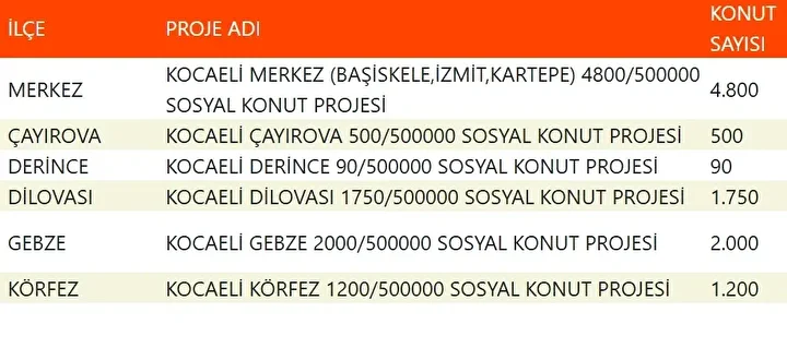 Projede en fazla konutun yapılacağı iller İstanbul, Ankara, İzmir, Bursa ve Konya olarak kayıtlara geçti. Bu doğrultuda 81 ilde 500 bin konutun yükseleceği ilçeler de netleşti.